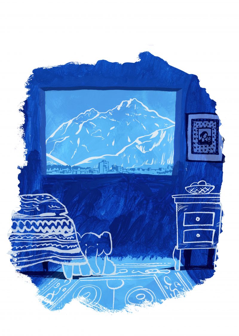 de kolossale berg die als een wachter buiten mijn raam staat